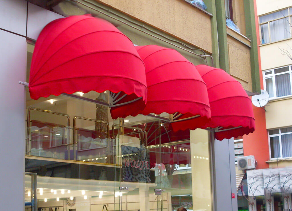- Sabit karpuz tente: Sabit karpuz tenteler, açılıp kapanmaz ve sürekli açık şekilde kalır. Genellikle binaların girişleri ve pencereleri üzerinde kullanılırlar.